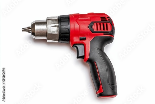 Red and black cordless drill isolated.