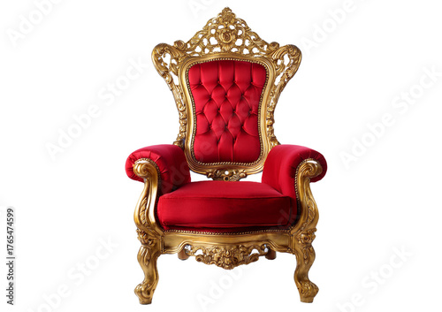 Red and golden royal armchair isolated on transparent or white background