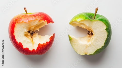 apple, red, green, bitten, half, fruit, healthy, snack, food, eating, nourishment, diet, vitamin, crisp, juicy, fresh, delicious, organic, nature, sweet, tart, dessert, breakfast, lunch, energy, vegan, vegetarian, agriculture, farm, fruit farm, produce, harvest, ripe, raw, texture, colours, contrast, bite, seed, core, clean, background, white, studio, photo, image
