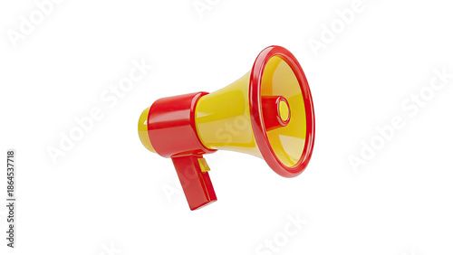 megaphone, bullhorn, loudspeaker, communication, announcement, audio, sound, advertising, alert, warning, protest, rally, vintage, retro, illustration, object, equipment, device, hand-held, red, yellow, isolated, white background, graphic, symbol, icon, speaker, public address