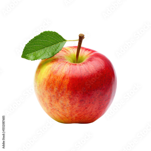 Red apple with green leaf and stem on fruit food