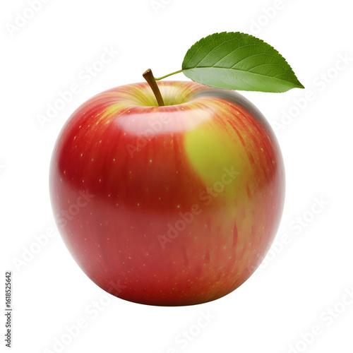 Red apple with green leaf showing vibrant color and texture isolated on transparent background