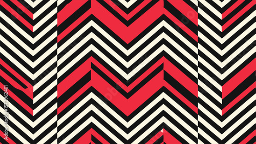 chevron, stripes, pattern, seamless, geometric, abstract, background, design, graphic, texture, red, black, cream, white, bold, simple, repeating, diagonal, zigzag, modern, art, visual, graphic design, textile, fabric, print, wallpaper, retro, vintage, optical illusion, graphic art, vector, illustration