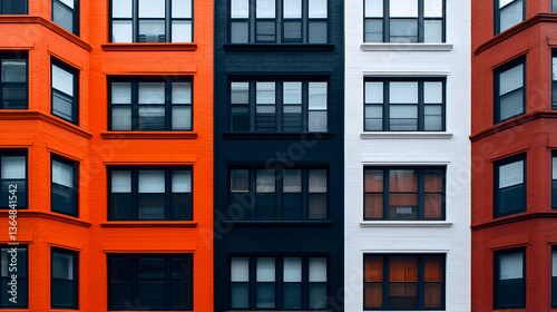 building, city, architecture, window, urban, exterior, facades, brick, red, black, white, row, pattern, geometric, design, structure, real estate, property, apartment, residential, contemporary, modern, city landscape, city landscape, brick building, building exterior, street scene, city view