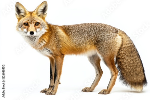 red fox, fox, wildlife, animal, mammal, wild animal, nature, white background, full body, standing, profile, fur, sharp, clear, detail, precision, canino, predator, wild, mammalian, fauna, creature