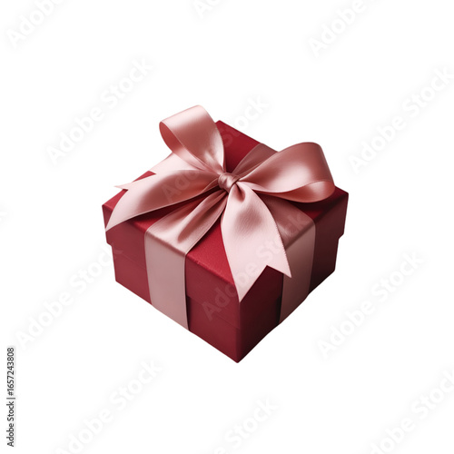 Red gift box with pink satin bow angled view present