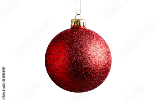 Red glittery ornament on black background, holiday decoration, cut out transparent