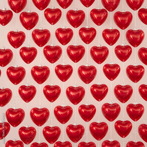 red, nubes, balloon, decoration, festive, romantic, arrangement, grid, glossy, string, symmetry, uniformity, reflective, light, celebration, valentine