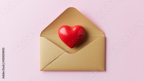 Red Heart Inside Gold Envelope on Pink Background for Love Concept