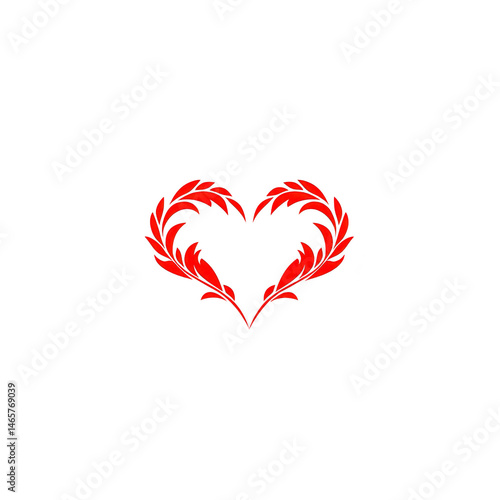 Red heart shape made of symmetrical, stylized leaves on transparency background, conveying love and elegance. design is simple yet artistic, with focus on nature inspired elements
