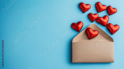 heart, envelope, love, romance, february 14, greeting card, minimalism, red, blue, background, texture, symbol, marketing, advertising, design, clean, simple, light, affection, care, communication, message, celebration, hi-res, image, photo