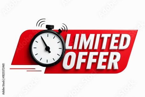 Red limited offer sign with a ticking clock emphasizing urgency and time sensitive sales promotions