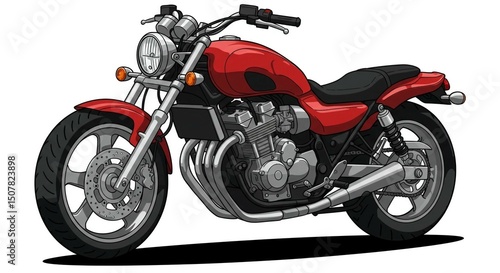 Red motorcycle. Color illustration of motorcycle on white background.