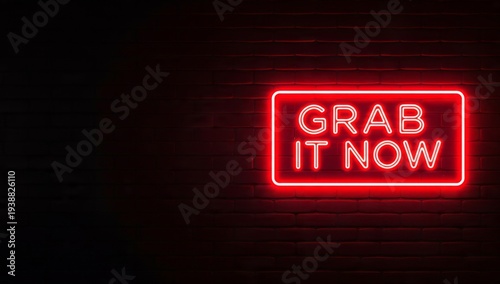 Red Neon Sign Grab It Now on Dark Brick Wall Background