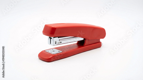 Red office stapler isolated on a clean white background