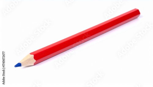 Red pencil with blue tip on white background, isolated, close-up, school supplies, art, drawing, education
