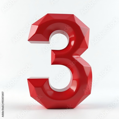 number, three, red, geometric, font, polygonal, shiny, design, digit, symbol, isolated, background, white