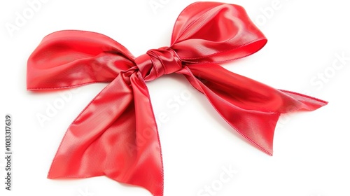 Red Ribbon and Bow Isolated on White Background - A Symbol of Elegance and Celebration. The Vivid Red Ribbon with Its Smooth Texture and the Graceful Bow, Standing Out Against the Pure White. Their