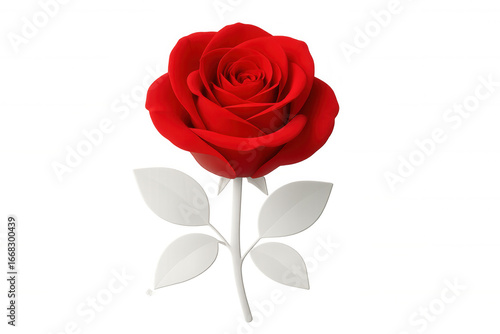 Red rose 3d rendering, white stem highlighting delicate petals, isolated against transparent background, symbolizing romance and heartfelt emotions