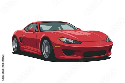 Red sports car front view on a white background Keywords: red car, sports car, coupe, vehicle, automobile, transportation, front view, sleek, modern, design, automotive, luxury car, speed