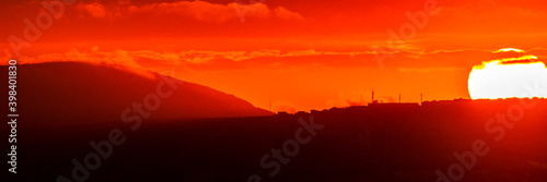 sky, sun, dramatic, sunset, sunrise, dusk, dawn, red, skyscape, landscape, mountain, horizon, cloud, end, earth, silhouette, epic, bright, colours, round, ray, light, dark, evening, morning, air, warm, deformation, apocalypse, disaster, alarm, anxiety, threat, danger, pollution, city