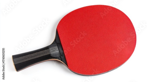 paddle, red, ping pong, racket, sport, game, equipment, hobby, leisure, recreation, competition, black, handle, rubber, surface, smooth, texture, isolated, object, white, background, closeup, single, tennis, table, activity, play, challenge, training, exercise, fitness, entertainment, match, professional, amateur, gear, round, curved, wood, wooden, grip, hand, held, indoor, tool, playing, top