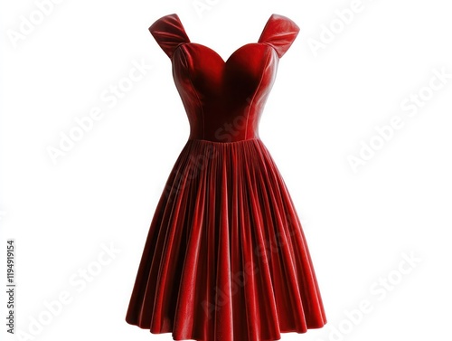 Red velvet dress with sweetheart neckline isolated against a white background