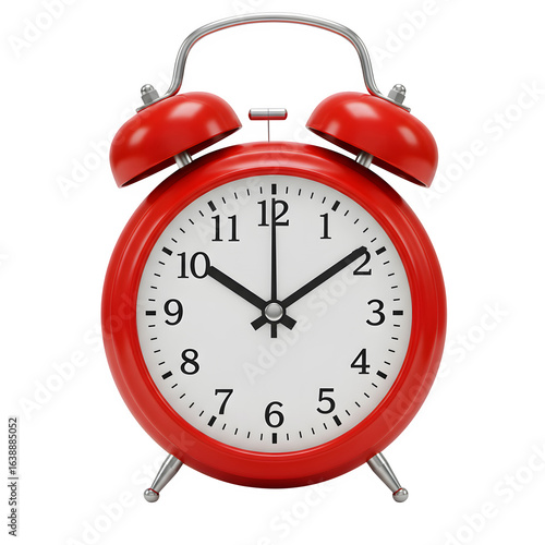 Red vintage alarm clock with classic retro design, perfect for time, nostalgia, and decor concepts. isolated on white or transparent background. PNG format.