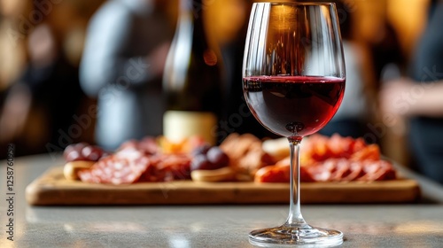 red wine, wine glass, meat, cheese, grape, food, drink, beverage, alcohol, eatery, bar, pub, catering, delicious, snack, party, celebration, evening, night, indoor, table, wooden board, glassware, red, brown, dark, light, closeup, selective focus, still life, epicure, gastronomy, cookery, wine tasting, wine bar, food photography, lifestyle, enjoyment, relaxation, togetherness, social gathering, occasion, holiday, luxury