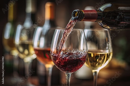 wine, pouring, glasses, red, wine glass, drink, alcohol, pour, liquid, delicious, tasting, celebration, dinner, table, eatery, event, party, cheer, enjoy, elegant, romantic, sophisticated, fine, dining, tableware, aroma, favor, taste, life events, epicure, dark, background, blurred, bottle, white, colours, variety, luxury, quality, sophistication, premium, vintage, rich, deep