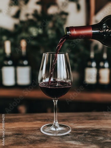 red wine is being poured into glass.