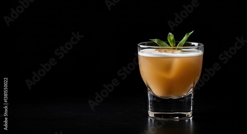 Refreshing beverage with foam and mint garnish for celebration, party invitation, bar menu, cocktail recipe, gourmet drink presentation, with trendy style and elegant appearance