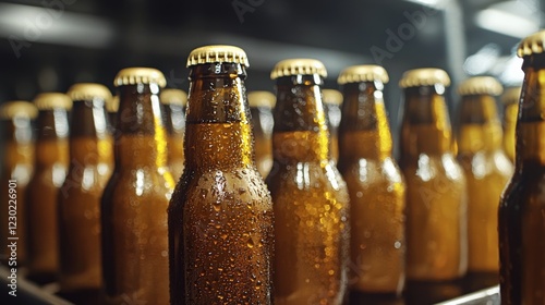 Refreshing Craft Beer Bottles with Dew Drops in a Brewery Setting
