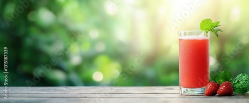 Refreshing glass of strawberry juice served in a clear glass on a bright surface perfect for health and wellness