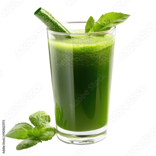 Refreshing Glass Of Vibrant Green Juice isolated on a transparent background
