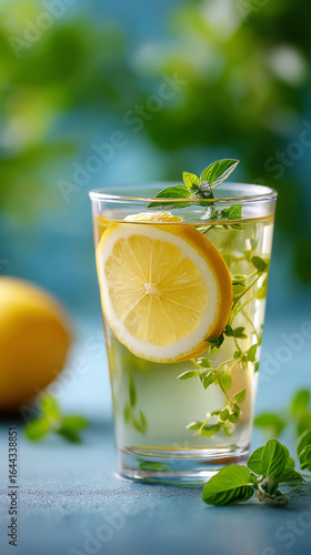 herbal, tea, lemon, herb, refreshing, glasses, sunny, drink, fresh, beverage, leaf, infusion, citrous, slice, mint, thyme, aromatic, green, healthy, natural, relaxation, vitality, summer, blue, background, bright, alimentary, wellness, refreshment, cup, vibrant, aroma, zest, herbalism, hydrating, organic, garnish, detox, phytotherapy, calming, sunlight, hydratation, invigorating, antioxidant, wholesome