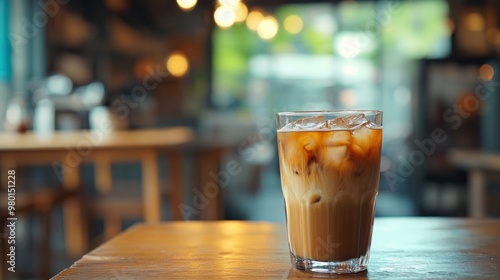 Refreshing iced coffee with whipped cream in café