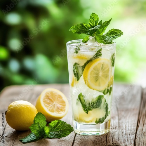 iced, lemonade, mint, leaf, wooden, table, refreshing, drink, lemon, slice, summer, beverage, nature, relaxation, dining, cool, fresh, ingredient, aromatic, bright, colours, thirst, quencher, casual attire, setting, healthy, citrous, favor, vibe, natural, light, juicy, herbal, note, glassware, aesthetic, composition, styling, handcraft, garnishing, sunlit, ambience, taste, cooling, leisure, vibrant