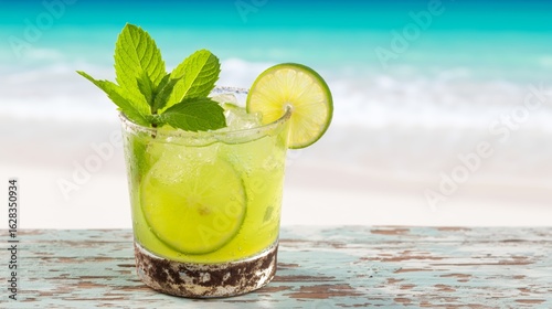 Refreshing Lime Mint Cocktail on Beach