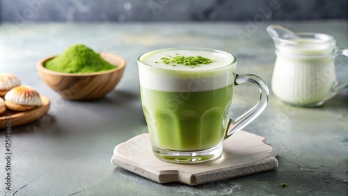 Refreshing matcha latte with creamy foam and green tea powder