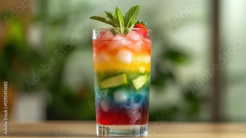 Refreshing rainbow beverage in glass