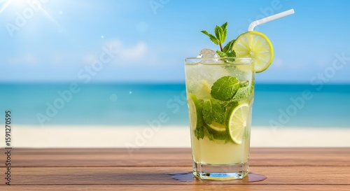 Refreshing summer cocktail on beachfront