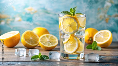 Refreshing water with lemon slices and ice cubes, refreshing, hydration, summer, citrus, drink, clean, fresh, beverage, natural