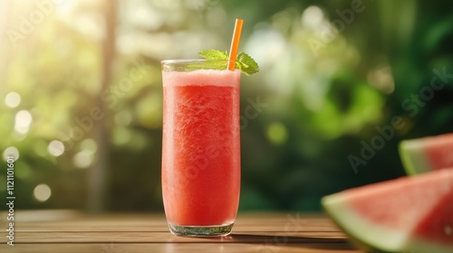 Refreshing Watermelon Smoothie Summer Drink Outdoor Glass Mint