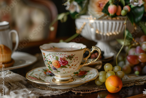 regency era tea party ,closeup still life with warm cozy vintage vibe