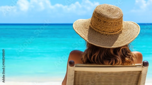 beach, ocean, woman, vacation, relax, sun, sea, summer, travel, holiday, tropical, paradise, beautiful, happy, relaxing, sand, turquoise, blue, view, shore, sunhat, straw, chair, sitting, tour tourism, sightseeing, traveler, destination, resort, tranquil, peaceful, sunshine, summer, get-away, freedom, leisure, enjoyment, photo, moment, happiness, nature, coast, woman, fashion, hat