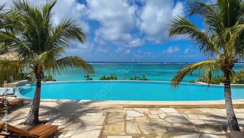 Relaxing poolside retreat tropical paradise image scenic landscape calm waters vacation vibe