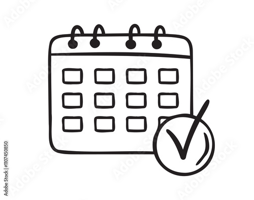 reminder, calendar, doodle, hand-drawn, icon, outline, drawing, line, clip art, symbol, agenda, appointment, check, linear, schedule, vector, business, date, event, meeting, signs, day, isolated, design, mark, time, plan, flat, graphic, month, page, concept, element, checkmark, shape, approved, planner, coming