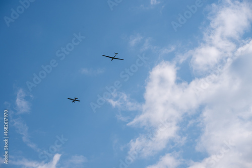 heaven, plane, flying, cloud, flight, tuned, aircraft, bird, jet, travel, transport, blue, aviation, nature, wing, white, glider, twin-engine, cable, towed