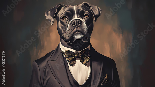 renaissance, style, dog, portrait, elegant, suit, bow, attaching, illustration